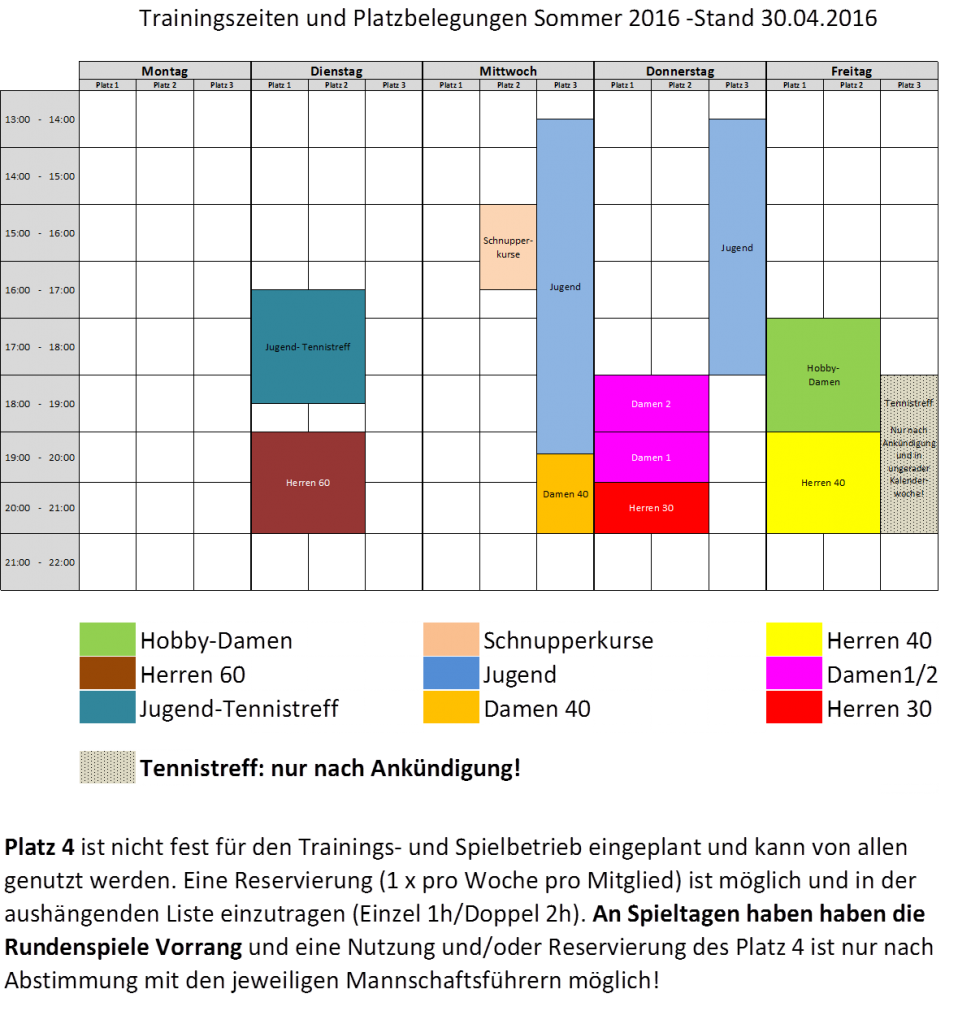 Trainingszeiten Sommer 2016